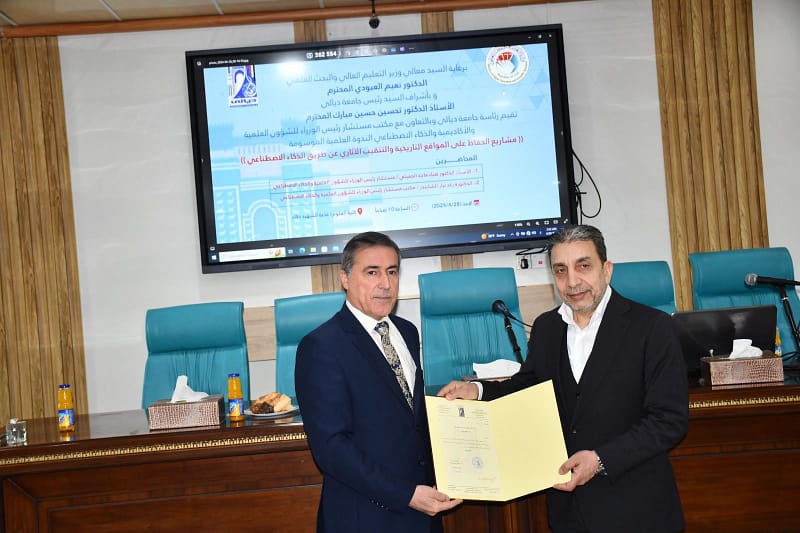 المشاركة كمتحدث رئيسي بندوة علمية في جامعة ديالى بتاريخ 29/4/2024 وقدم برفيسور ضياء الجميلي الندوة العلمية الموسومة بعنوان ” مشاريع الحفاظ على المواقع التاريخية والتنقيب الاثاري عن طريق الذكاء الاصناعي .